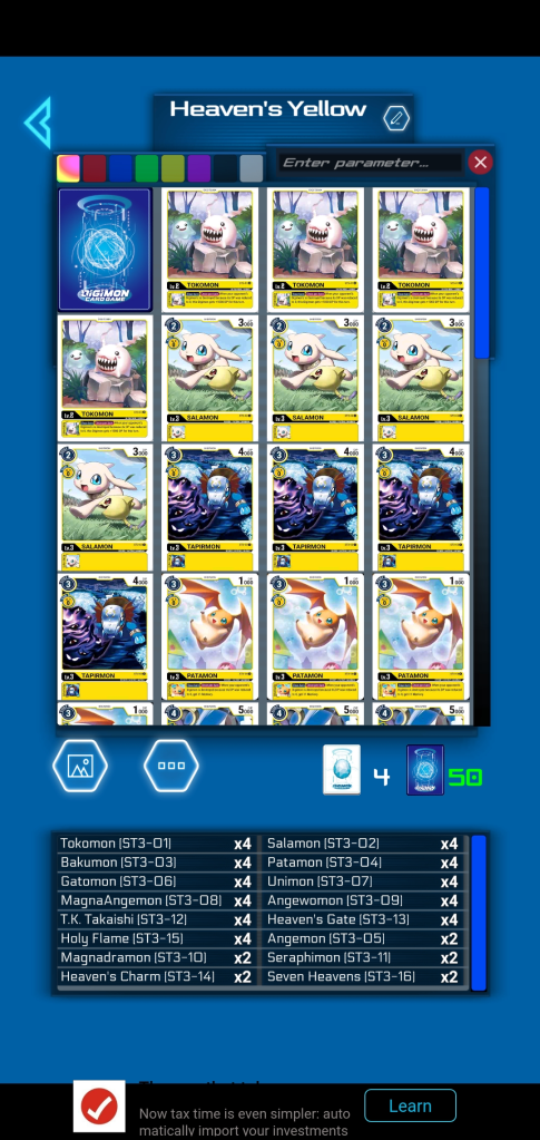 Deck Sharing – You can now upload your deck to our server, search other decks on the server, or directly import a deck via a server code. Uploading a deck requires watching an ad(to help pay for server costs, I am only one developer!). Saving a deck adds another deck slot to your app, so the more decks you save, the more decks you can make and upload!